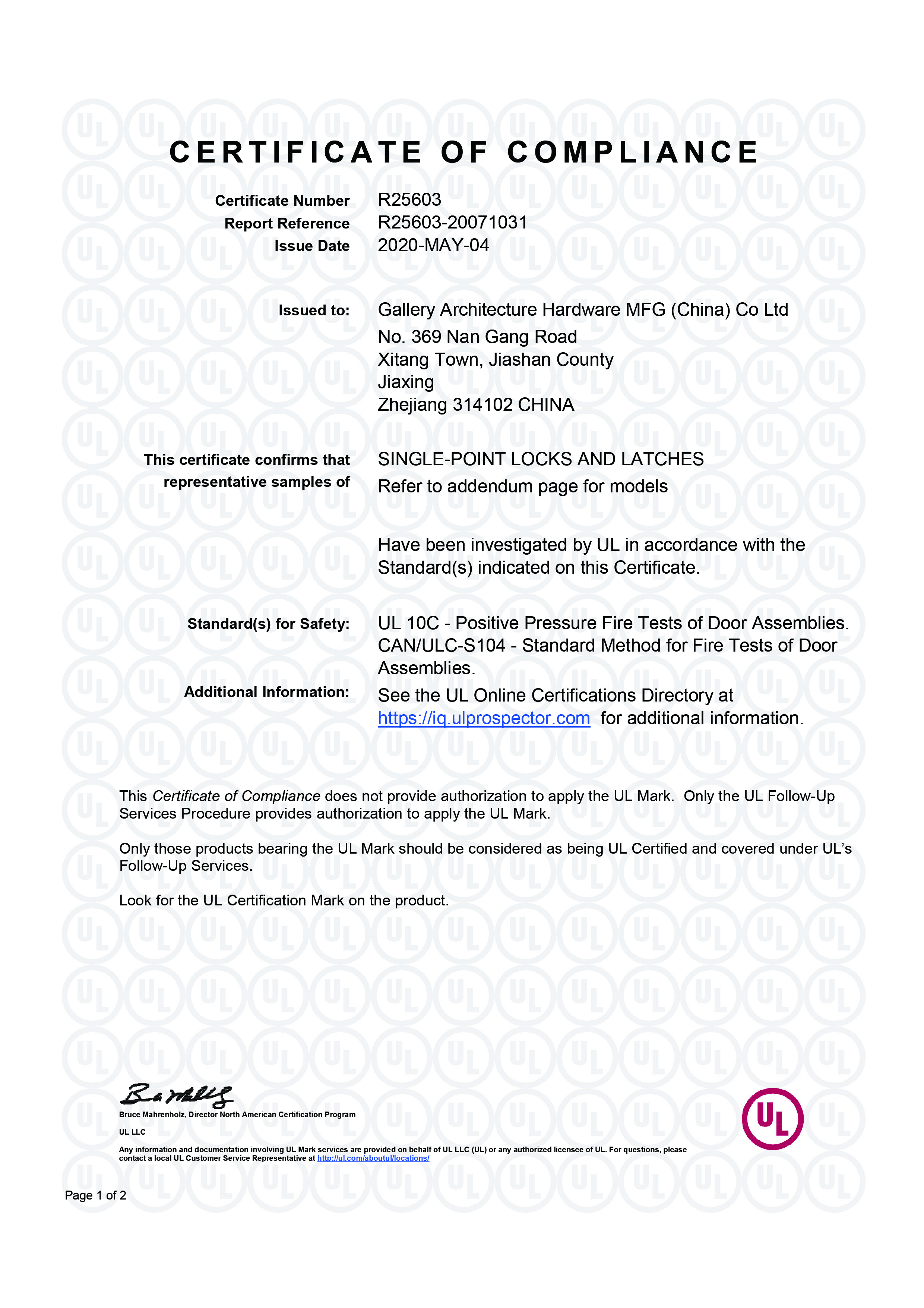 浙江堅迪五金制造有限公司始建于 1995 年。自 2003 開始,公司致力于高標準商業(yè)鎖的研發(fā)工作,并于 2006 及 2007 年,8700 插芯鎖系列獲得美國國家標準 ANSI A 156.13-2005 一級、ANSI A 156.2-2003 二級和美國 UL 10C3 小時防火測試認證。自 1998 年以來,公司不斷提升產(chǎn)品和客戶服務品質(zhì),并獲得了 ISO 9001 的認證。
